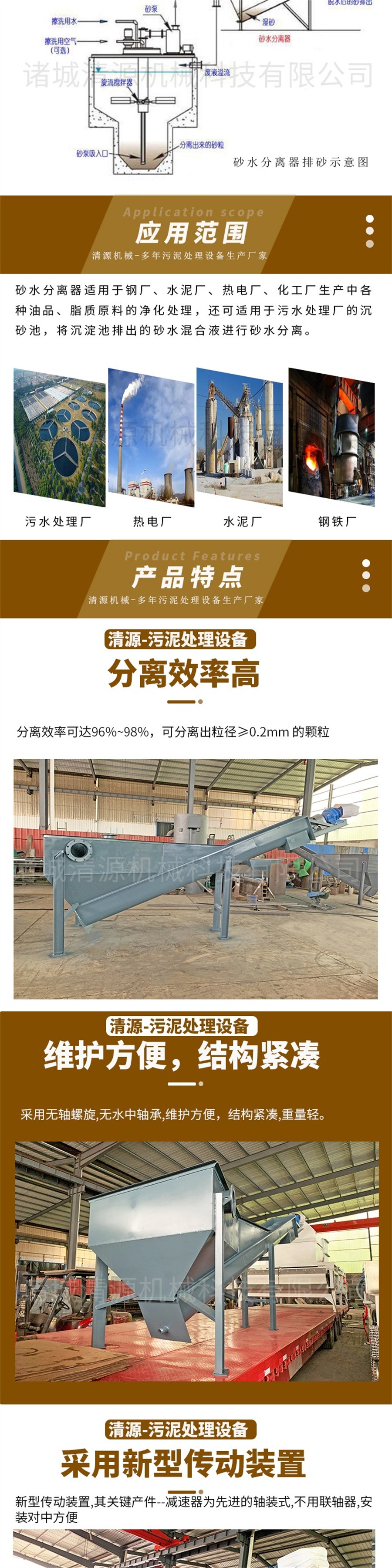 用于將城市污水處理或工業(yè)廢水處理中的沉砂池排出的砂水混合液進(jìn)行砂水分離。