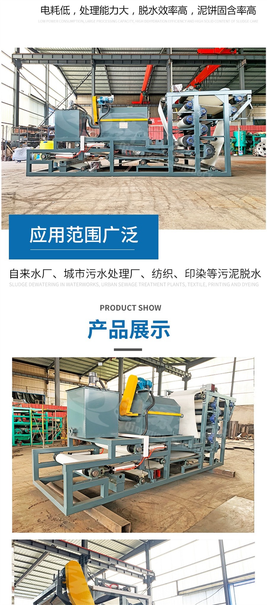 帶式濃縮脫水一體機(jī)適用于自來水廠、城市污水處理廠、紡織、印染業(yè)、化工、制藥業(yè)、造紙、皮革業(yè)、畜牧、養(yǎng)殖業(yè)、 釀酒、食品業(yè)、金屬表面加工業(yè)、垃圾掩埋場等工業(yè)污水處理中的污泥脫水。